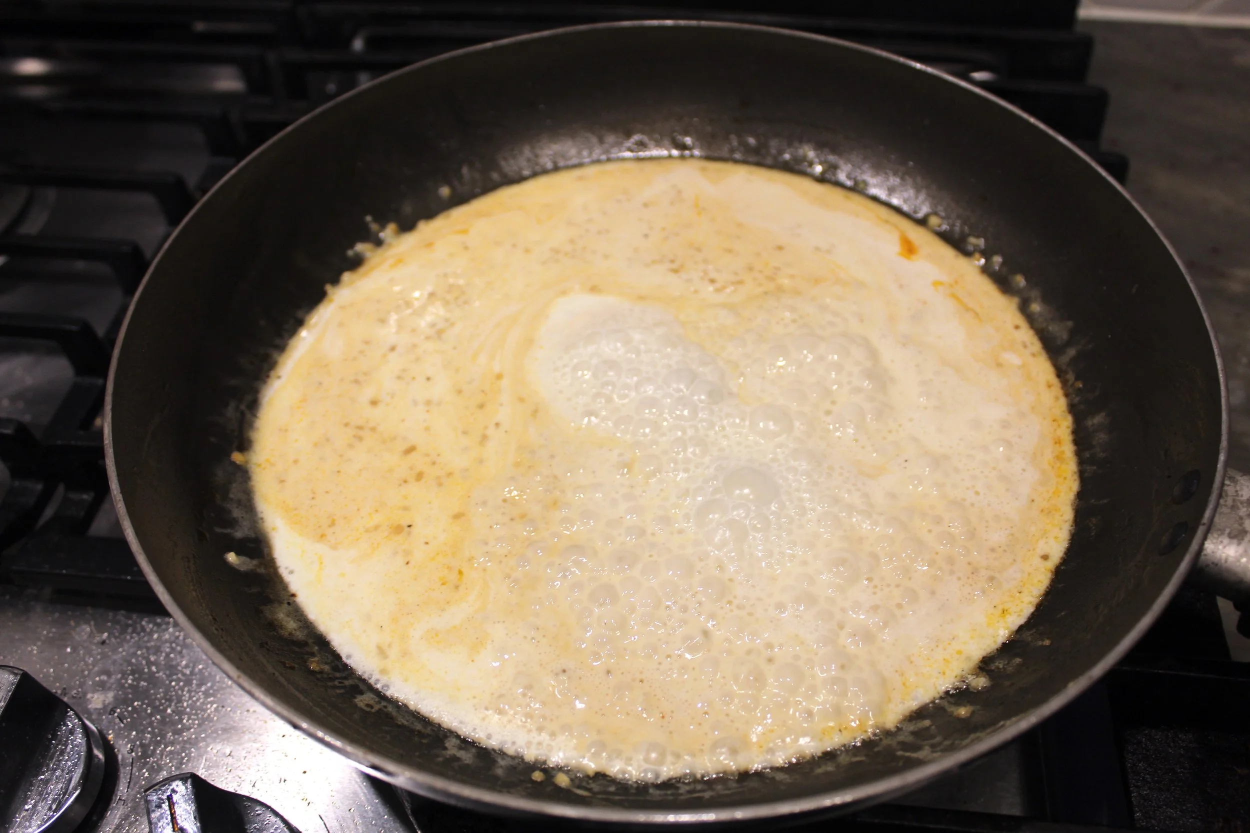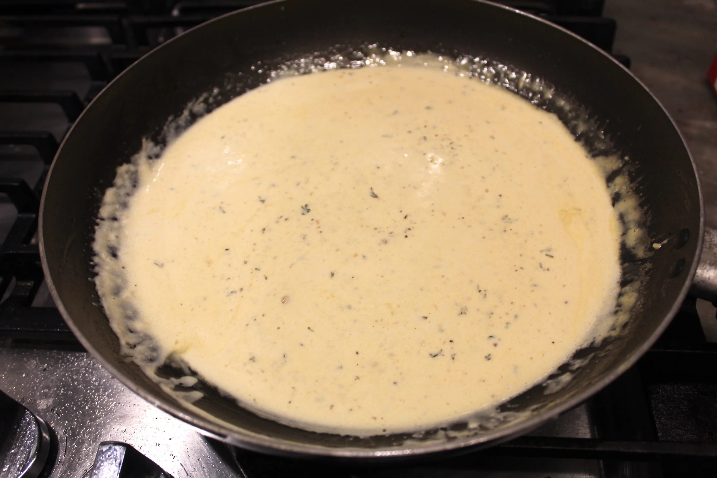 - In the same pan, add 1 tbsp of butter, minced garlic, lemon juice, heavy cream, parsley flakes and salt & pepper. Cook 3-5 minutes or until the sauce thickens.