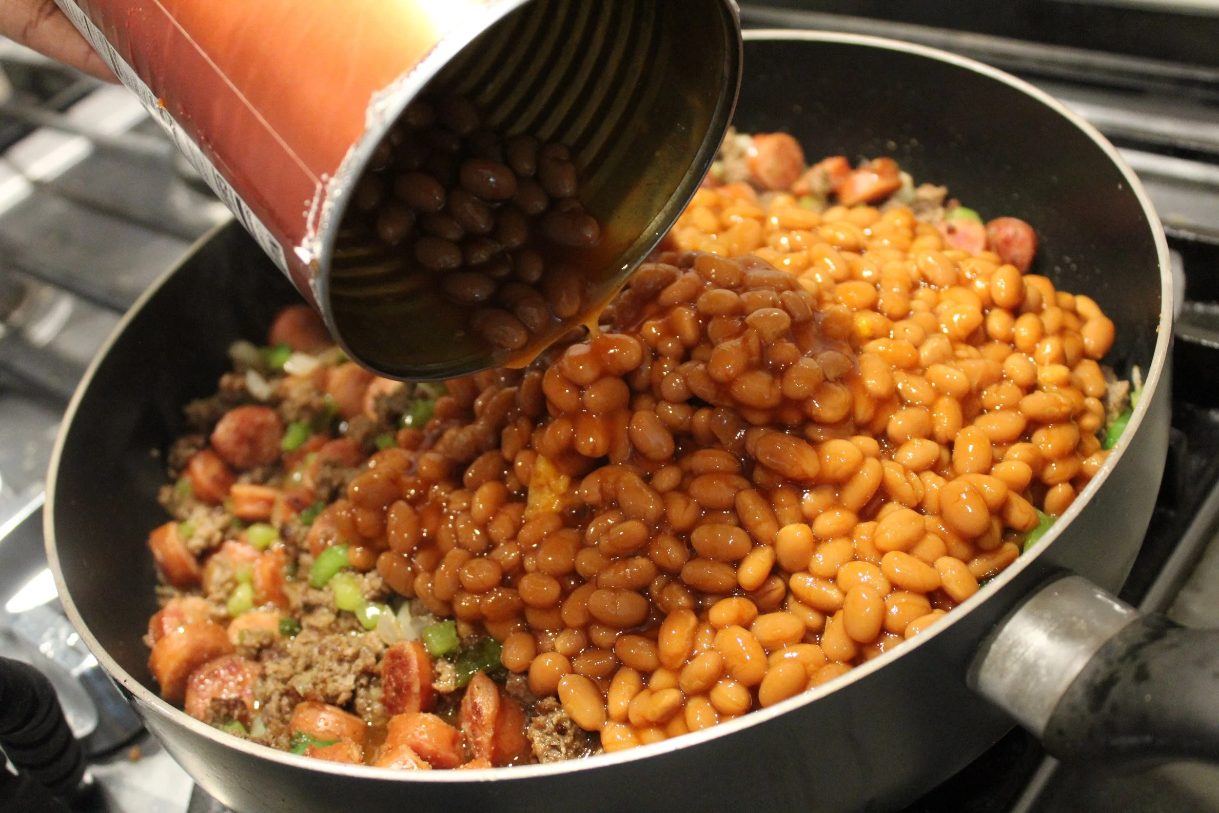 Add 1 55oz can of baked beans and stir well.