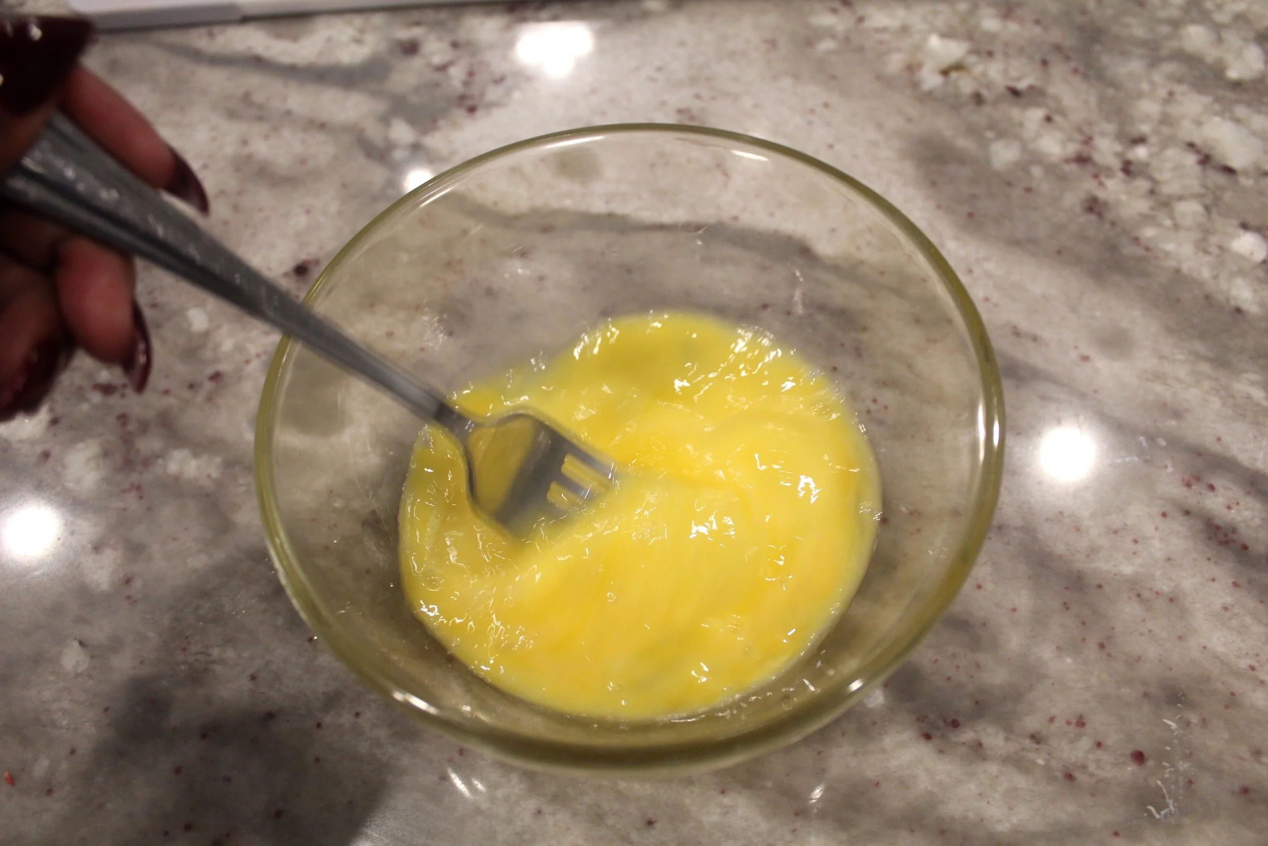 - In a bowl add the beaten eggs.