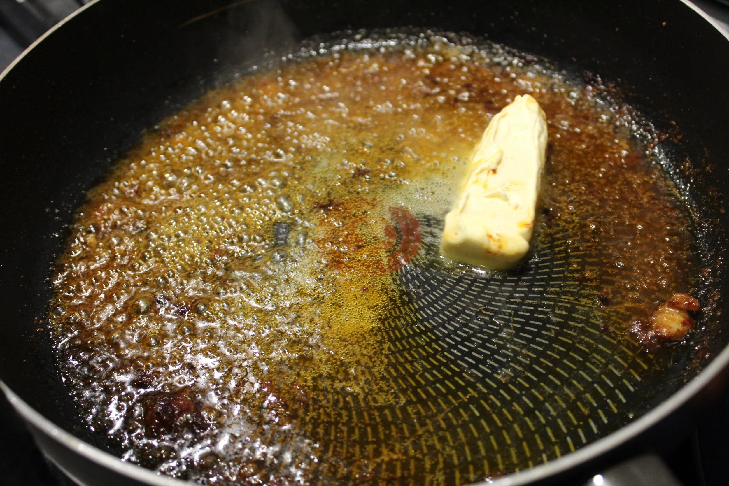 In a large pot, add 1 tbsp of vegetable oil and 2 tbsp of butter. Once the butter has fully melted, add the chicken thighs.