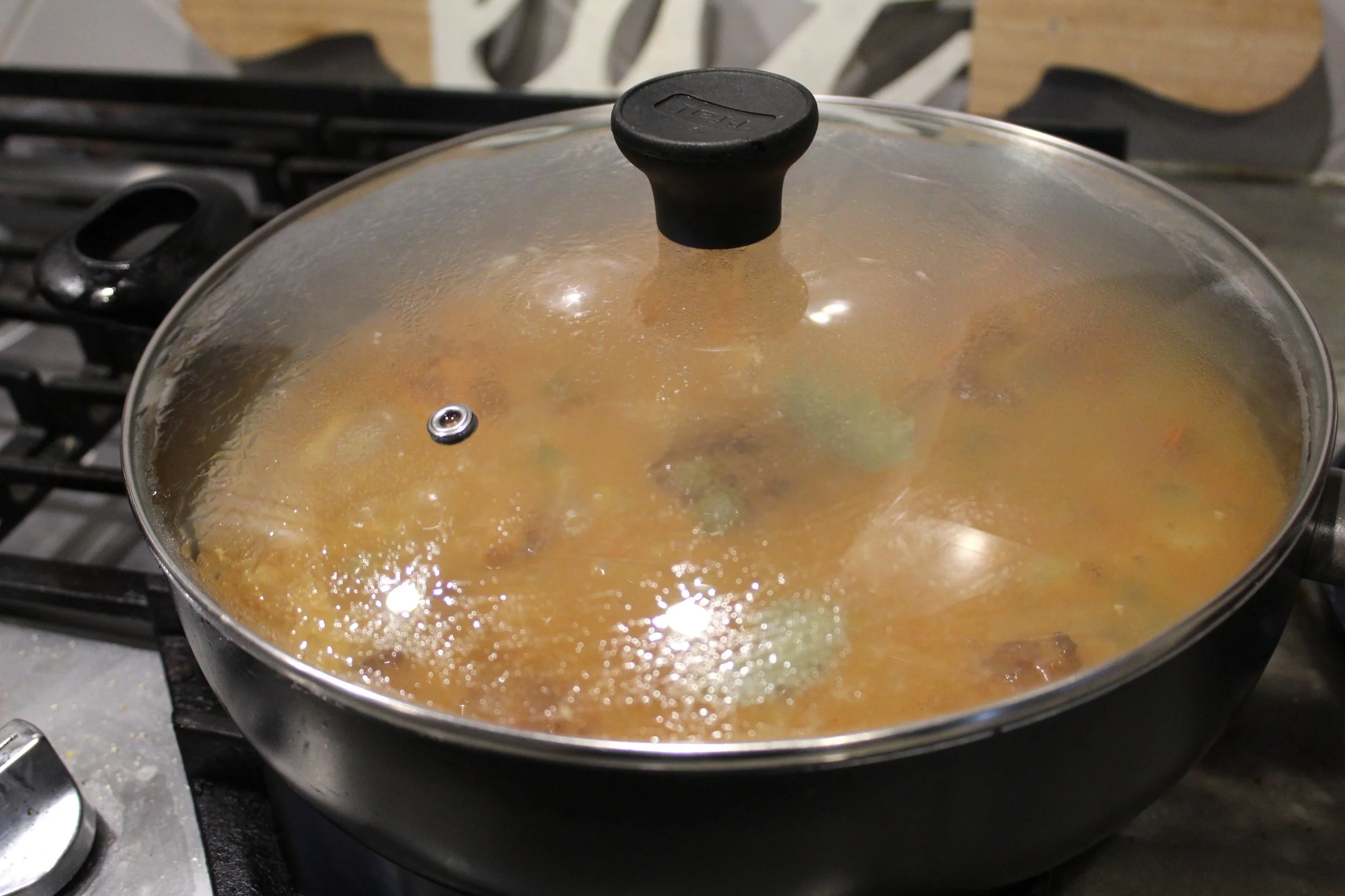 - Cover the pot with a lid and cook on medium low heat for 25-30 minutes or until the chicken is tender and the sauce has thickened and turned a darker brown color.
