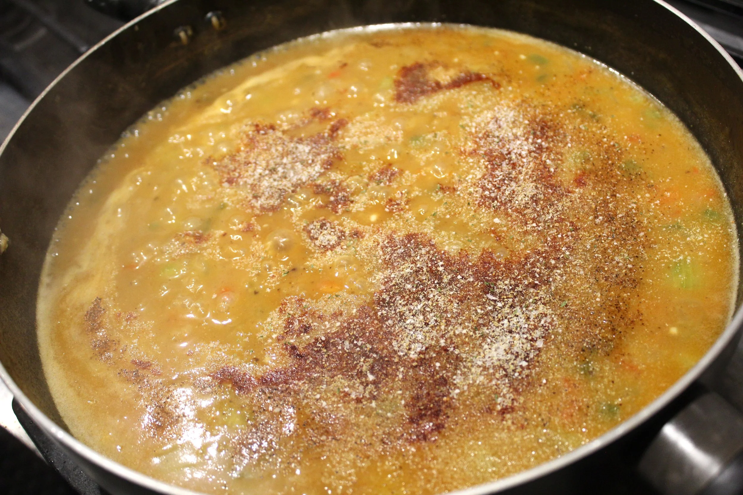 - Pour the remaining 2 1/2 cups of chicken broth and stir well.