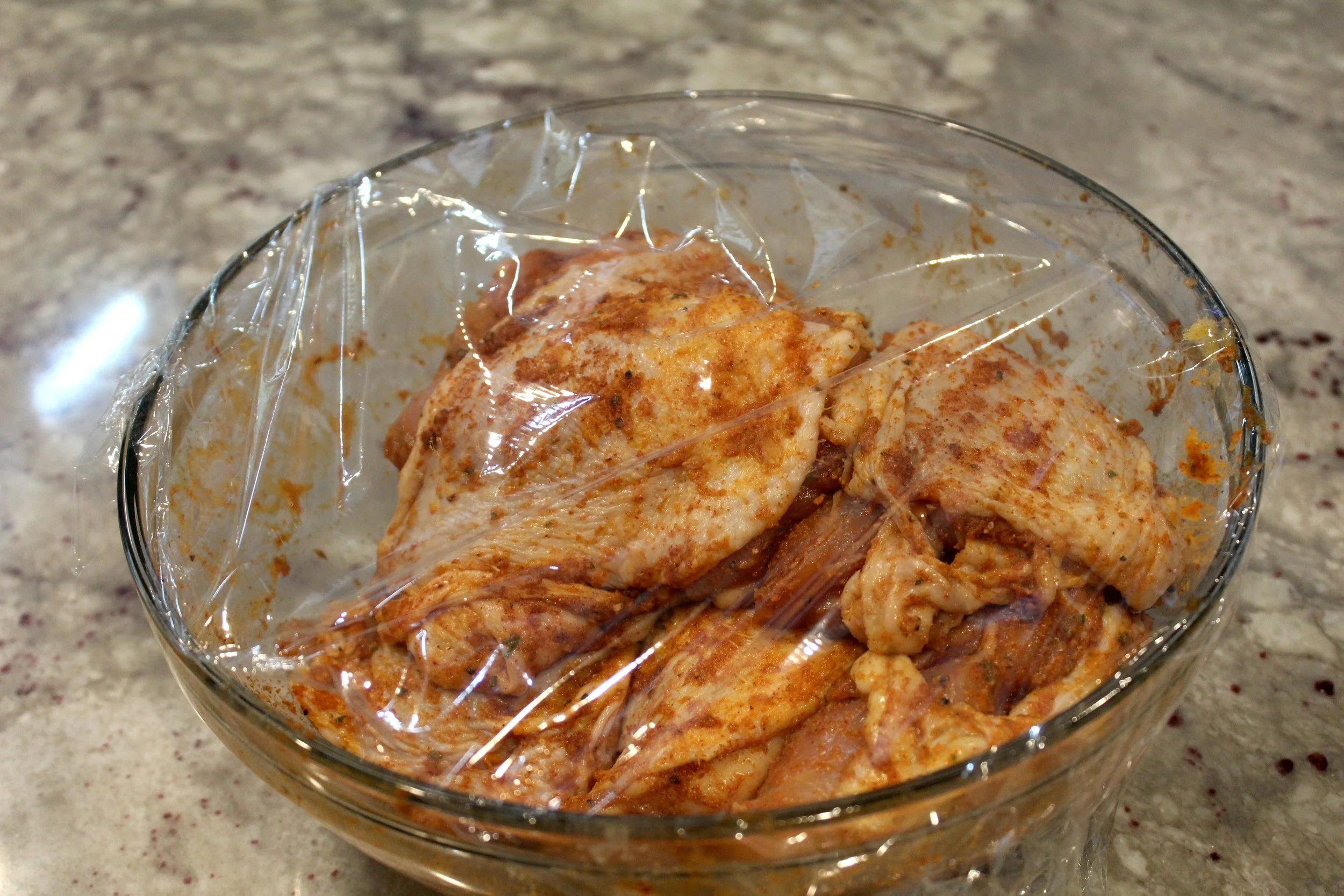 - Cover the chicken with plastic wrap and marinate for at least 30 minutes.